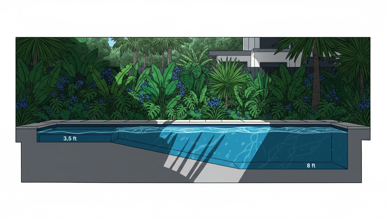 A flat-bottom pool can also work well. Many homeowners like a consistent 4 to 5 feet because it feels simple and social. On the other hand, once you push far past 6 feet, you usually lose more usable space than you gain.