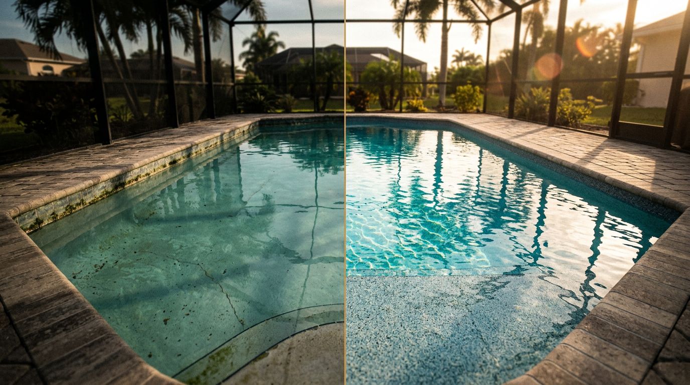 A pool finish in Southwest Florida lives a hard life. Intense UV exposure bakes the surface. Warm water speeds up chemistry changes. Then summer rain can dilute the water in a single afternoon.